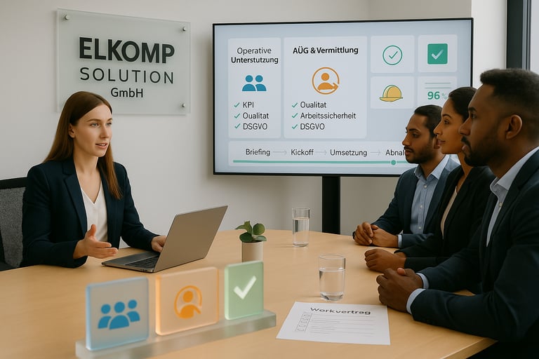 Werkvertrag für klar definierte Leistungen: Umfang und Ziel werden verbindlich festgelegt, wir liefern das Ergebnis, Sie nehmen ab – mit dokumentierter Erfolgskontrolle und klarer Abgrenzung zur Arbeitnehmerüberlassung